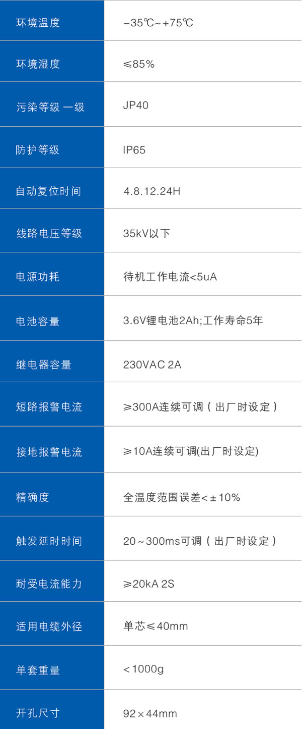 當供電線路有短路或接地故障發生時,短路或接地電流產生的電磁場變化,使固定在電纜上的傳感器中測量線圈產生脈沖信號,當脈沖信號的值的大小達到或超過設定的故障電流值時,故障指示器會自動記憶故障狀態,故障指示燈閃爍發出故障指示,同時通過遠程報警接口,將故障 信號傳遞給監控中心,工作人員通過故障指示信號能夠迅速準確地找到線路故障位置,及時排除故障,恢復電網供電。