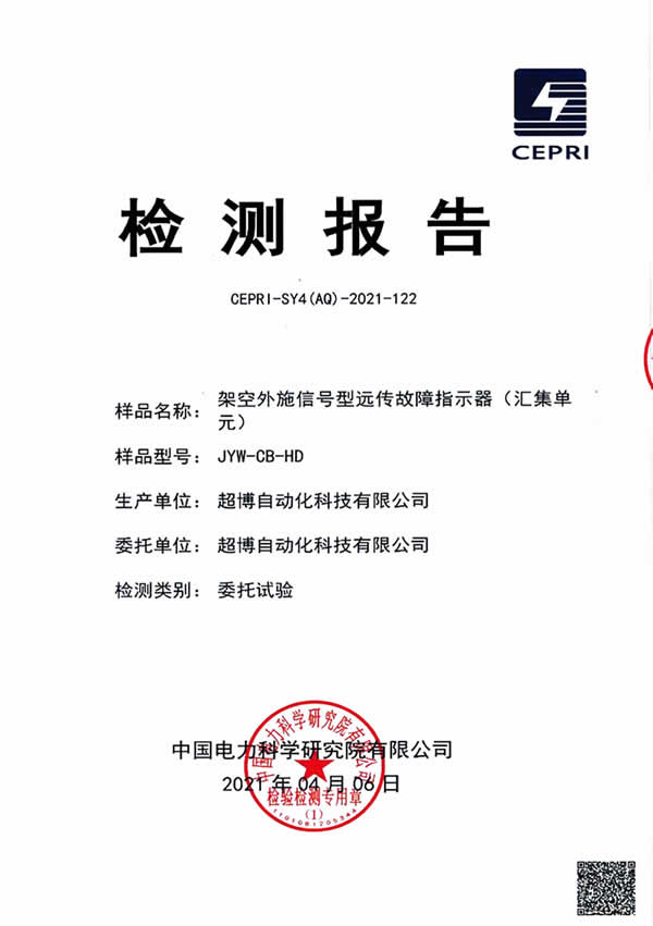 架空外施信號型遠傳故障指示器(匯集單元)檢測報告