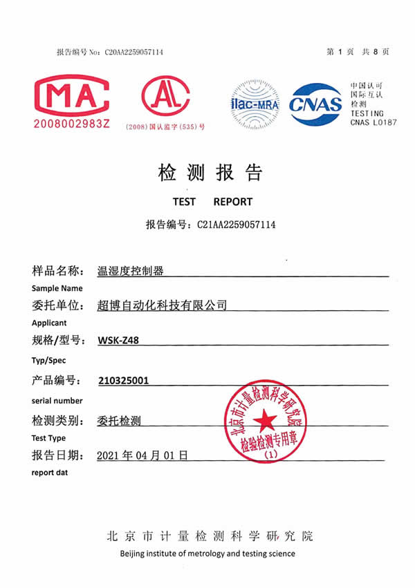 溫濕度控制器檢測報告